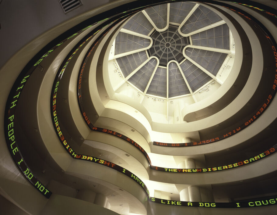 Jenny Holzer, Untitled (Selections from Truisms, Inflammatory Essays, The Living Series, The Survival Series, Under a Rock, Laments, and Child Text), 1989. © 2023 Jenny Holzer. Photo by David Heald © Solomon R. Guggenheim Foundation, New York. Courtesy of the Solomon R. Guggenheim Foundation.