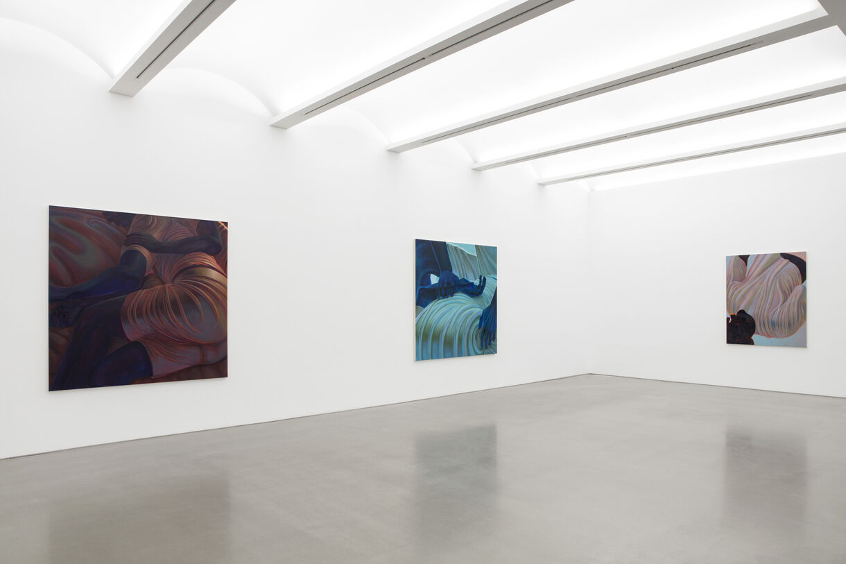 In the Zürich half of a two-part presentation (the other show, “Rumors” is at Mendes Wood DM in São Paolo), Ebecho Muslimova’s series of paintings portray Fatebe, the artist’s alter ego, in flat, cartoonish lines. This signature character frequently finds herself in contorted, surrealistic situations, visualizing desire as Goya-esque grotesquery amid skyscrapers and modern urban domesticity. In cheerful, irreverent paintings, Muslimova offers a vision of a liberated, playful female body.