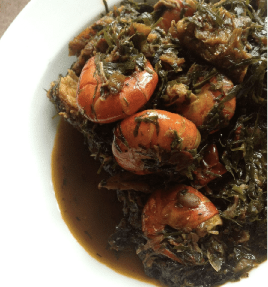 Afang soup is a beautifully nutritious vegetable soup made from Afang leaves and other leafy vegetables such as Malabar spinach and ozaki leaf.