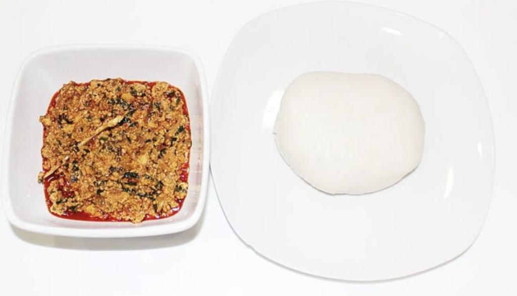 Pounded yam is another version of fufu but its combination with egusi soup is one of the most identifiable traditional Nigerian dishes.
