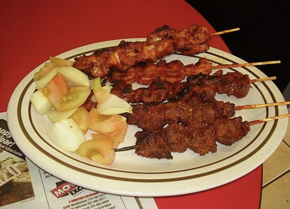 After marinating, the skewers are then barbecued or grilled before being eaten hot.