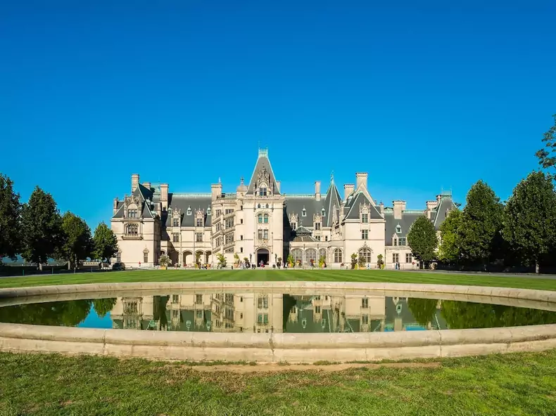 Biltmore Estate in Asheville, North Carolina, is the largest privately owned house in the US.The Biltmore House, built in the late 1800s by George Vanderbilt, features 35 bedrooms, 43 bathrooms, and 65 fireplaces. The gardens covering the estate’s 8,000 acres were designed by American landscape architect Frederick Law Olmsted.