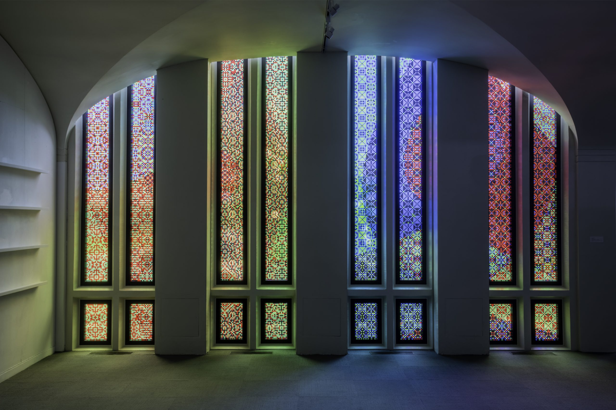 Artist duo Mark Barrow and Sarah Parke explore the intersection between art, craft, and technology through their collaborative weaving and painting practice. This show demonstrates the intelligence of their chosen medium: The artists consider weaving to be a form of thinking that reveals a divine system of patterns. Their hand-loomed textiles and paintings address a range of themes, from creation myths and the cosmos to computer science and the mathematical process endemic to the act of weaving. Among the artworks on view are textile paintings that soothe the eye with tranquil grace and a tremendous vinyl window installation that recalls stained-glass cathedrals.