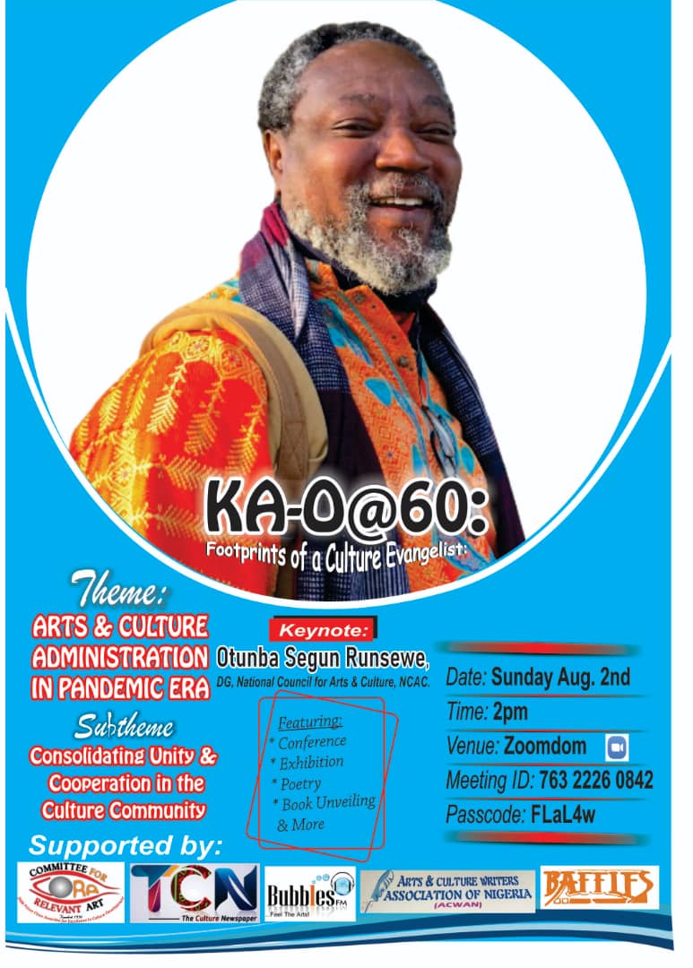The online event, themed ‘Arts & Culture Administration In Pandemic Era’, will hold at 2pm Nigerian time in celebration of the man who was responsible for the formation of Coalition of Nigerian Artistes (CONA) in the early 1990s.