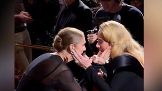 1:06Emotional moment Adele hugs Celine Dion at Vegas show