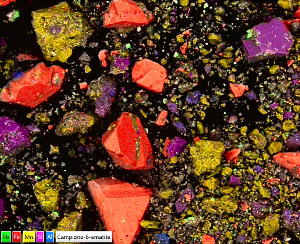 The team used a variety of technologies to analyze and date the pigments, discovering mineral components including ground hematite, quartz, braunite, anglesite, and rare tiny crystals of galena—a lead mineral. “The respective amounts of lead minerals are very limited,” the researchers wrote, adding that the minerals that produce a deep red—primarily hematite—make up more than 80 percent of the analyzed sample.