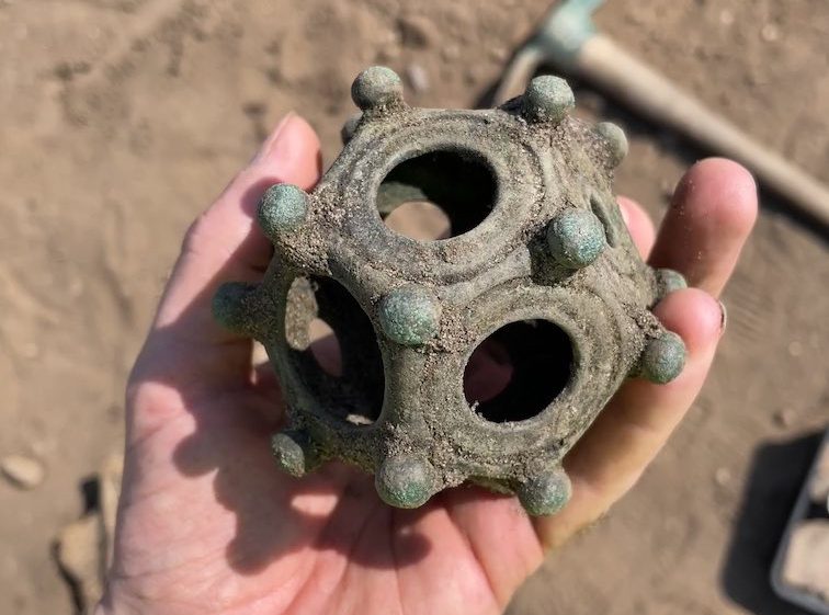 “It’s in an excellent condition—considering it’s been buried for 1,700 years,” group secretary Richard Parker said of the dodecahedron, a small, hollow object made from copper alloy and consisting of 12 pentagonal sides with circular cutouts at their center and studs on each corner.