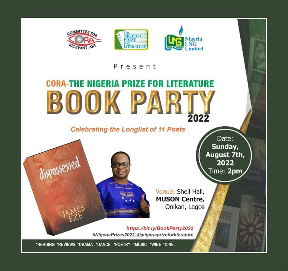 This year’s ‘book party’ in celebration of the longlist of eleven books for this year’s Nigeria Prize for Literature holds next Sunday August 7 at the Muson Centre, Lagos.
