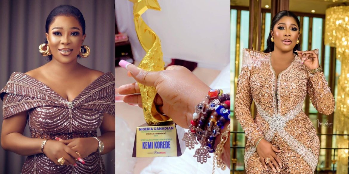 Congratulations have been pouring in for Yoruba Nollywood actress Kemi Korede as she bags a Special Recognition Award at the Nigerian Canadian Celebrities Entertainment Awards in Canada.