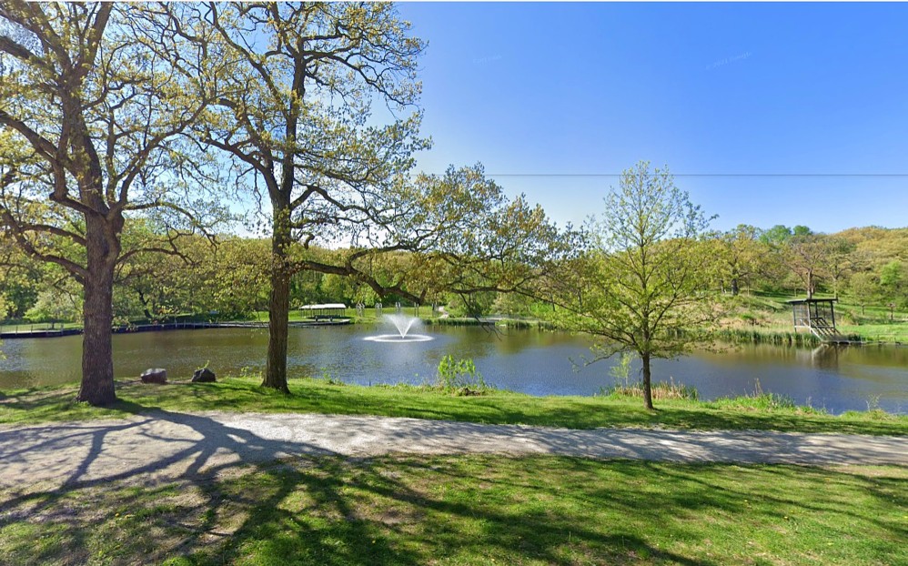 The installation – which consists of a pavilion and walkways surrounding a pond — was commissioned by the Des Moines Art Center in 1994 and was designed by New York artist Mary Miss. Greenwood Park is located just south of Grand Avenue and the art center.