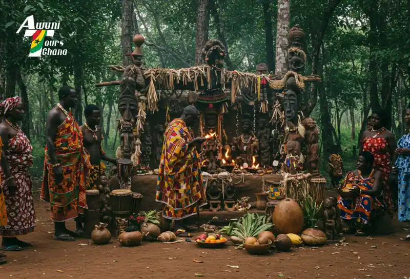 Many believe in the power of ancestral spirits who guide and protect their families. Sacred trees, rivers, and rocks are also respected as spiritual places. These practices are an important part of Ghanaian culture, which shows a deep connection between the natural world and the spiritual world.