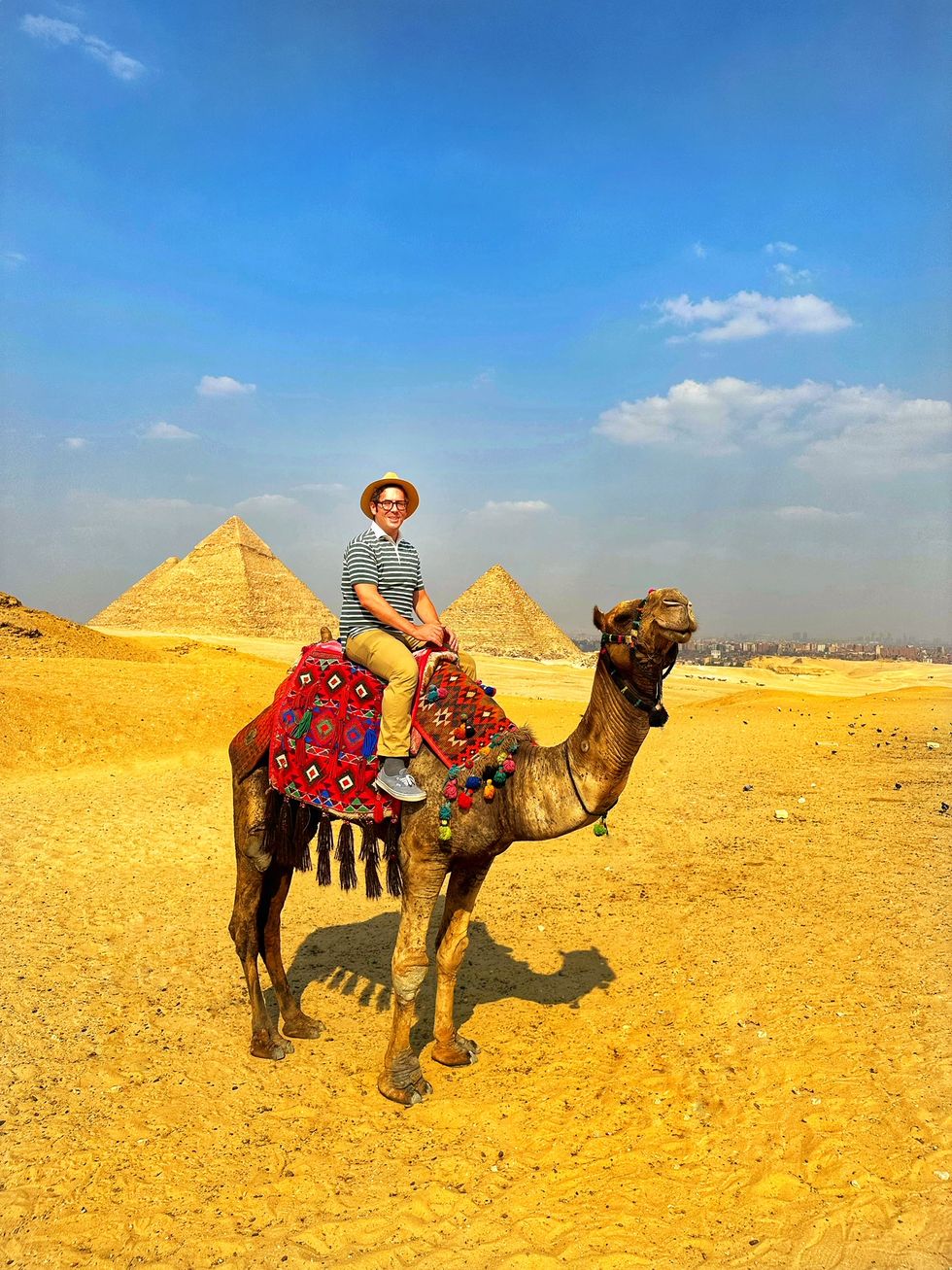 The writer on his trip to the pyramids, which was made simple with the help of a Four Seasons-recommended guide, Ibrahim Hamza. Less carefree were negotiations with a local camel.GARRETT MUNCE
