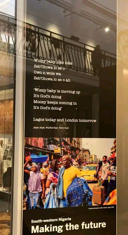 Grammy Award-winning Nigerian artiste, Wizkid, has again given bragging rights to his fanbase as the lyrics to his song ‘Jaiye Jaiye’ which featured Afrobeat maestro, Femi Kuti, was spotted at a museum in the United Kingdom, the Horniman Museum.
