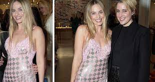 Robbie turned heads at the event in a stunning Versace ensemble, wearing a mini dress that masterfully blended silver and pink, symbolizing her ongoing embodiment of the Barbie persona.