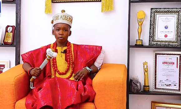 Chief Olamilekan Adebayo, popularly known as Adigun Olowe Yoruba, meaning “an encyclopedia of Yoruba proverbs,” was crowned chief of Sọlu Alade Kingdom, Ibeju-Lekki, Lagos, at just five years old.