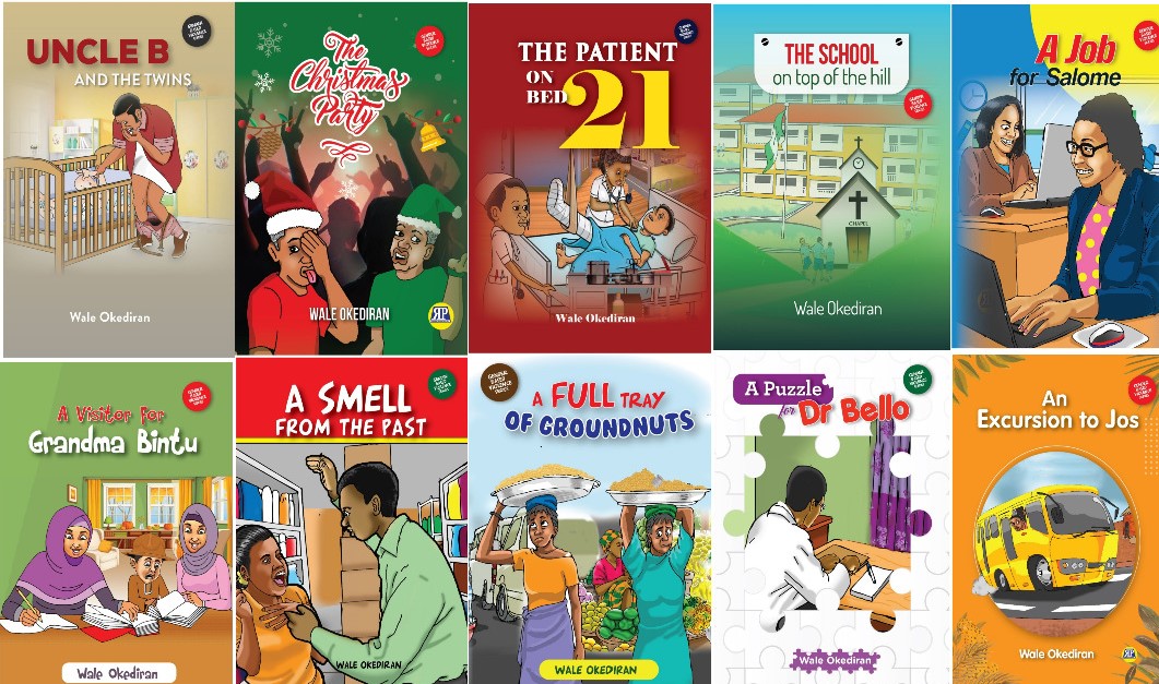 The other five are ‘The Patient on Bed 21’, ‘A Puzzle for Dr Bello’, ‘A Visitor for Grandma Bintu’, ‘The School on Top of the Hill’ and ‘A Full Tray of Groundnuts.’