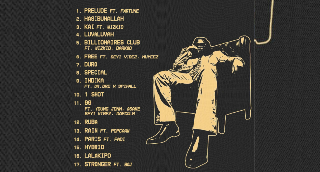 Other collaborators include American hip-hop icon Dr Dre, Jamaican dancehall star Popcaan, British-Nigerian singer Daecolm, and DJ SPINALL.