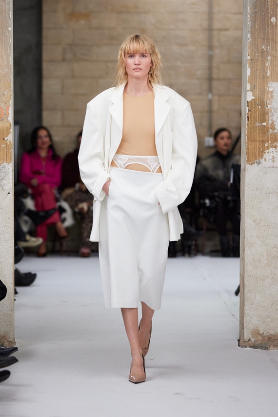 His sophomore runway show saw designer Abraham Ortuño Perez, who earned his chops creating shoes and accessories for Jacquemus and Coperni, further come into his own and present a decidedly mature iteration of his eponymous label. Forgoing the traditional biyearly collection schedule, it took a year to develop the collection that emphasized quality and comfort. “I always say that, for us, the clothes are the accessories of the accessories,’’ Ortuño Perez tells PAPER with a grin. “As the accessories became more classic, I was seeking the Abra look that complements this.”