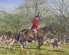 The third in this trio of Edwardian sporting pictures in a textbook painting by Sussex artist Heywood Hardy (1842-1933). Born in Sussex, he came from a family of artists: his father, his two older brothers, his sister and two of his cousins were all painters.