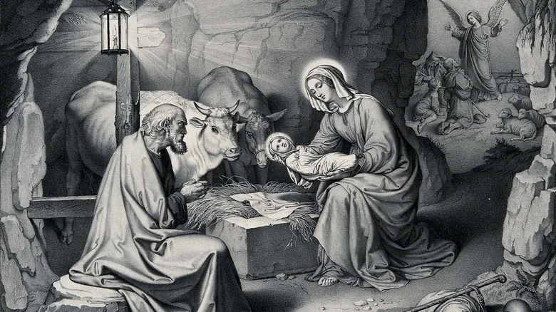 Pope Benedict XVI may have credited other parts of the Bible with influencing artists who included animals in the Nativity, but there was Christian writing that put a donkey and an ox on the scene of Jesus’ birth. The Book of Pseudeo-Matthew incorporates elements from the gospels of Matthew and Luke, though events are rearranged (via The Gnostic Society Library). As per Luke, Joseph and Mary traveled to Bethlehem after Caesar Augustus for a census, and an angel told the shepherds of the newborn Christ. Per Matthew, three wise men came to pay young Jesus homage, albeit several days after his birth, and King Herod sought the child’s death. But Pseudo-Matthew includes the donkey Mary rode on the way to Bethlehem and even has an angel command the animal to rise and deliver Mary unto the shelter of a cave. (Per Britannica, stables in caves were customary in Palestine, and early Nativity depictions were often set there).