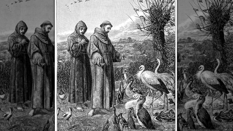 According to the National Catholic Register, Francis visited Israel between 1219 and 1220, and it was likely this visit that inspired him to stage a live depiction of the Nativity in 1223. With permission from Pope Honorious III, he arranged for the scene to be staged in a cave outside of Greccio, Italy that Christmas. The ox and the donkey were real, but Jesus (per Corcoran) was represented by a doll. At least one witness reported a vision of the doll as the real Christ child in Francis’s arms, crying real tears, and the hay used in the scene was later reported to provide cures to animals and people alike.