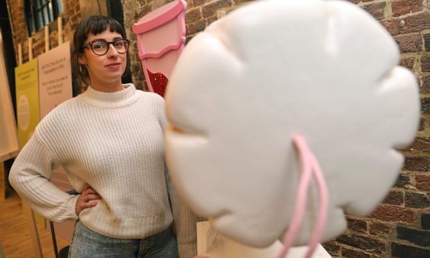 In a bright indoor space in Camden’s Stables Market, a giant tampon is flanked by giant menstrual cups. Illustrations of female genitalia are dotted around the walls and some underwear is in a glass case.